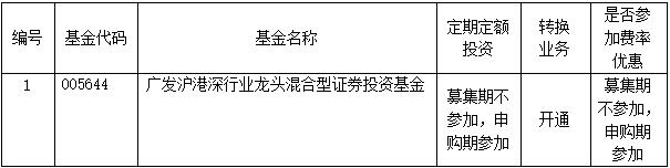 注: 广发沪港深行业龙头混合型证券投资基金目前处于募集期,客户可通过富滇银行认购该基金。