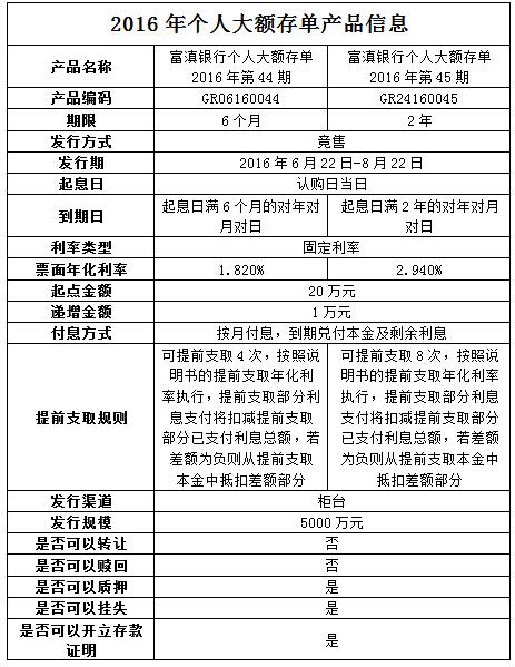 个人大额存单 2016年第44、45期产品发行公告