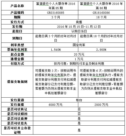 个人大额存单 2016年第85、86期产品发行公告