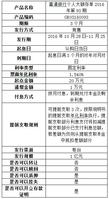我行定于2016年10月28日至11月25日发行个人大额存单2016年第93期产品,产品具体信息如下:
