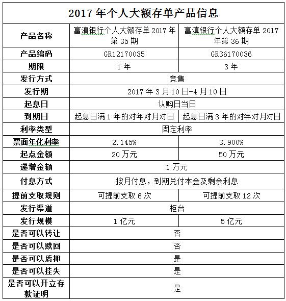 我行定于2017年3月10日至4月10日发行个人大额存单2017年第35、36期产品,产品具体信息如下: